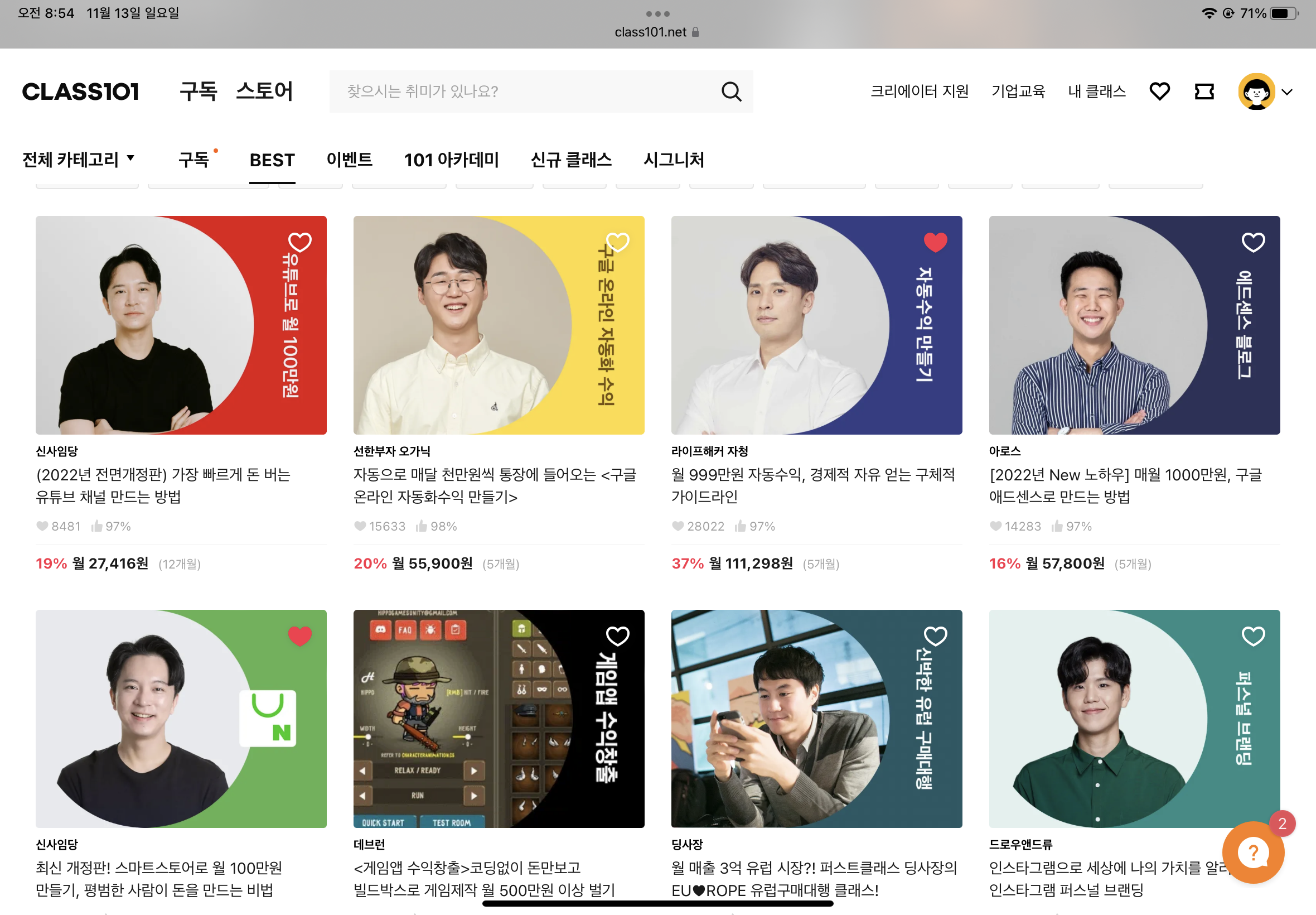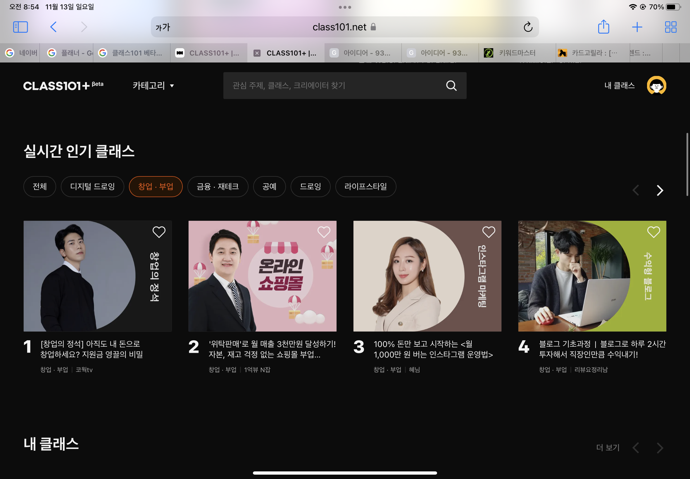 저처럼 무자본 창업, 자기계발에 관심 많으신 분들은 혼자서 끙끙대지마시고 꼭 클래스 101 무료체험 해보시고 월간구독 으로 넘어가실지 판단해보시면 좋겠습니다.